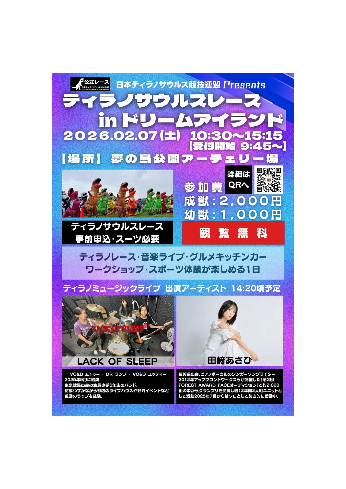 【幼獣】参加チケット2026年2月7日(土)ティラノサウルスレース in ドリームアイランド